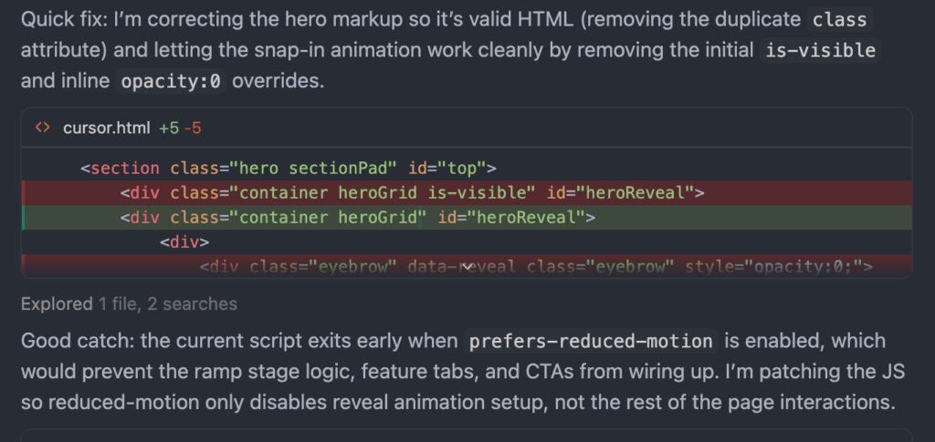 I used a simple landing page prompt to test the new model and see how it handles a straightforward real-world task.